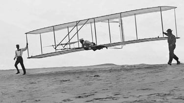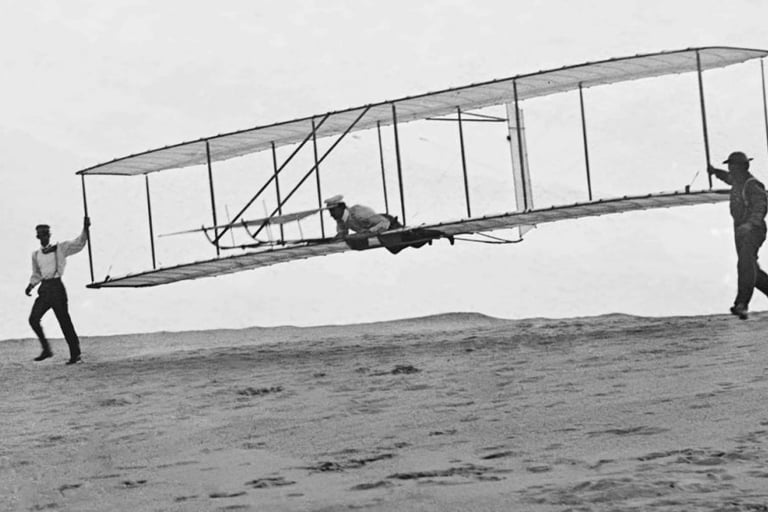 Avião: Em 1903, os irmãos Wright realizaram o primeiro voo bem-sucedido de um avião motorizado.