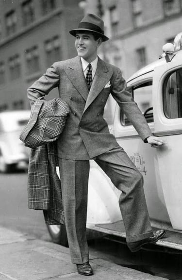 Ternos: Homens usavam ternos bem cortados, geralmente com calças de cintura alta e paletós de abotoamento simples ou duplo.